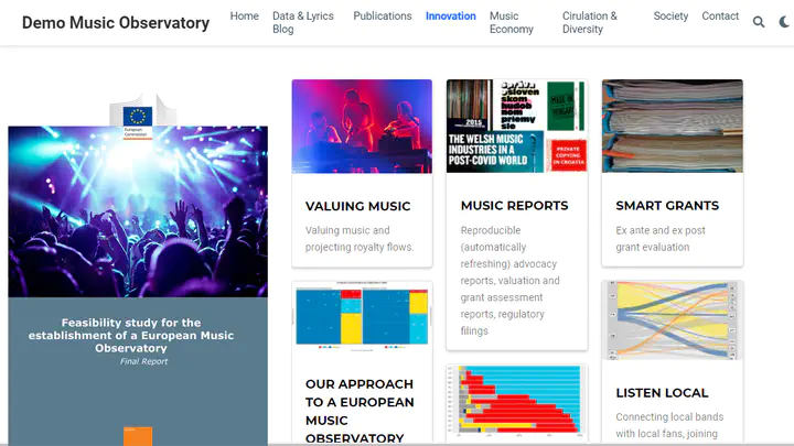 Challenge Our Demo Observatory: Check out the Music, Society and Citizenship Pillar of our Demo Music Observatory. If you do not find what you are looking for, contact uswe will try to put the data there from our repositories.