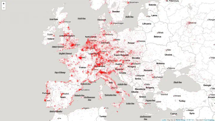 Illustration: Red dots mark the places where Library Genesis is used in Europe.PLOS One is the fourth most influential multidisciplinary journal after Nature, and Science, and Proceedings of the National Academy of Sciences of the United States of America (based on H index.) On December 3, 2020 it published a paper co-authored by Dr. Balazs Bodo, associate professor at the Institute for Information Law (IViR), Daniel Antal (Reprex, Demo Music Observatory), a data scientist interested in reproducible research, as an independent researcher, and Zoltan Puha, a Data Science PhD at Tilburg University, JADS. PLOS (Public Library of Science) is a nonprofit Open Access publisher, empowering researchers to accelerate progress in science and medicine by leading a transformation in research communication.